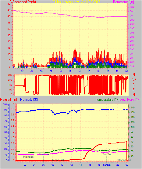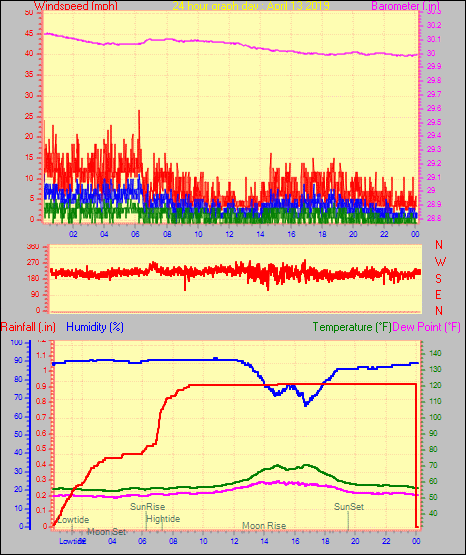 Minimum dewpoint = 41.3°F on day 30 at time 0:06
