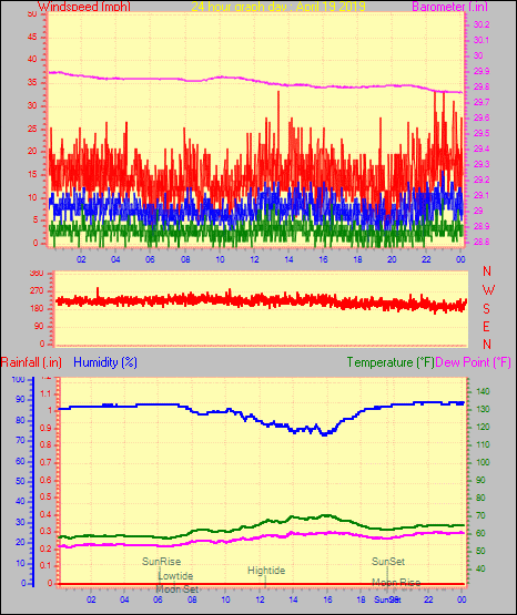 Maximum windspeed = 13.8 mph on day 04 at time 13:36