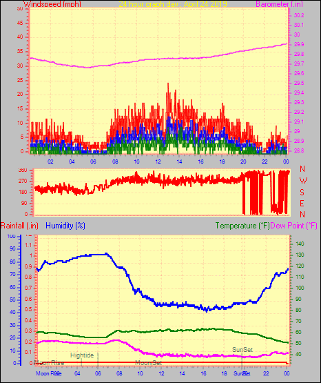 Maximum gust speed = 26.5 mph from 290 °(WNW) on day 01 at time 06:14