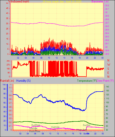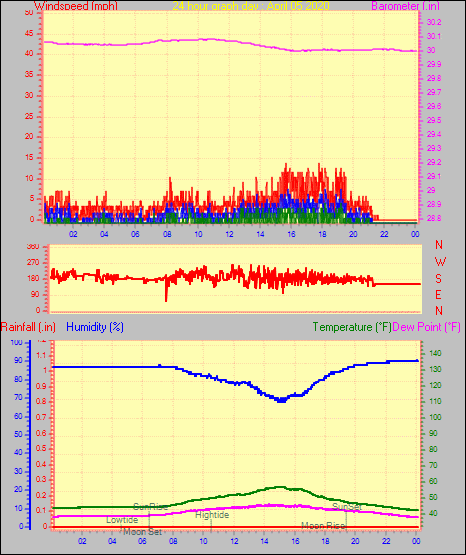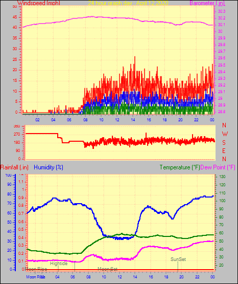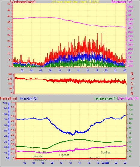 Maximum windspeed = 21.9 mph from 180°( S ) on day 13 at time 15:19