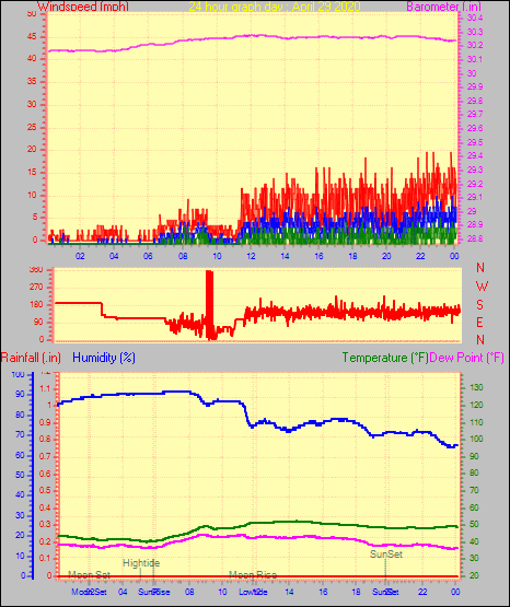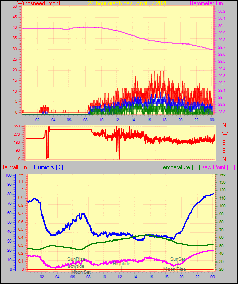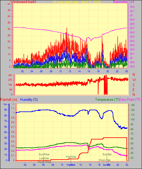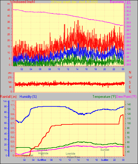Maximum windspeed = 10.4 mph on day 29 at time 23:50