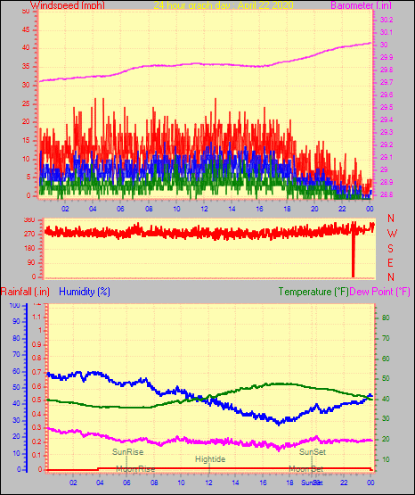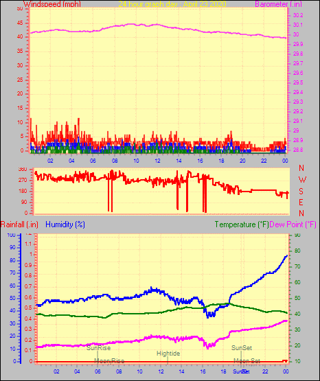Minimum temperature = 40.2°F on day 29 at time 05:27