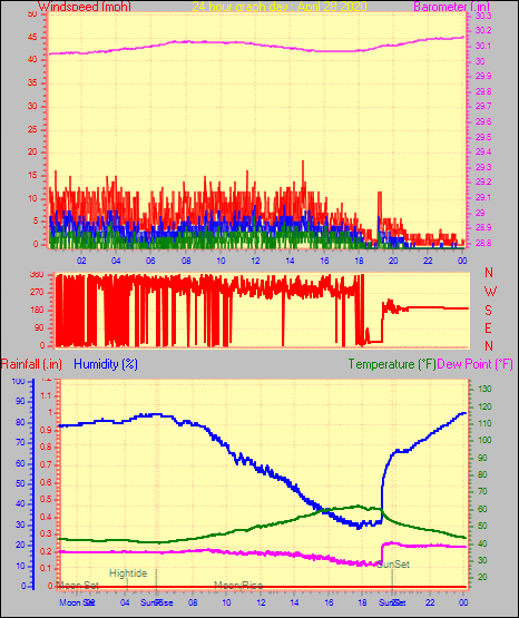 Maximum windspeed = 18.4 mph on day 30 at time 14:16