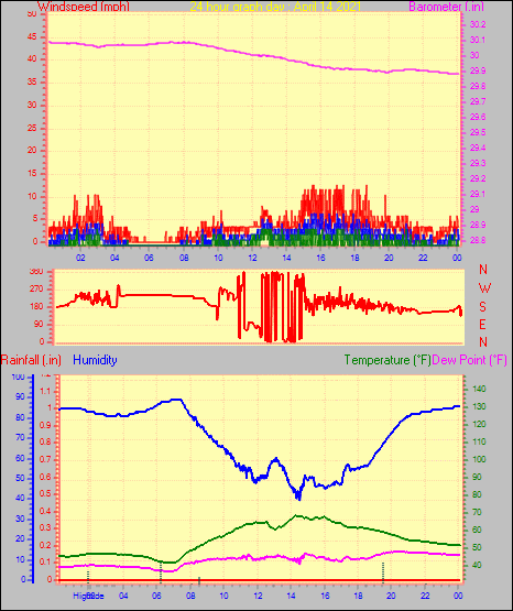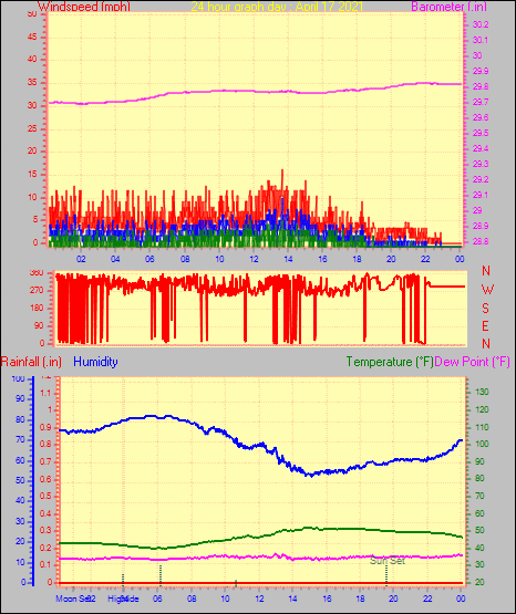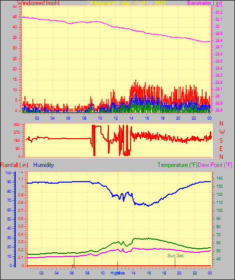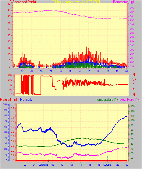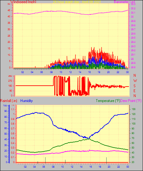 Maximum windspeed = 16.1 mph from 278°( W ) on day 30 at time 15:34