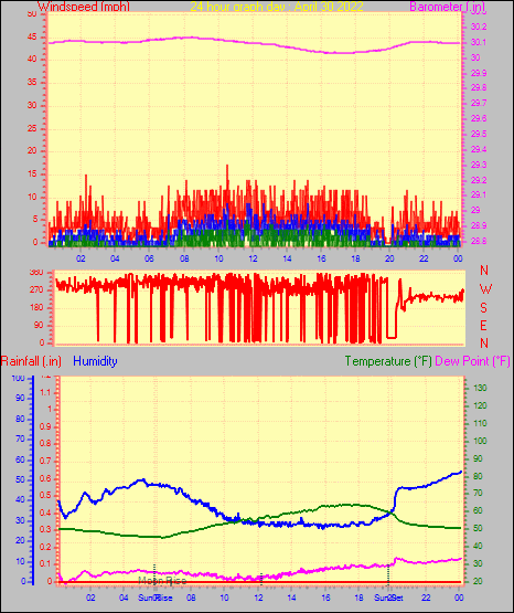 Maximum windspeed = 17.3 mph from 265°( W ) on day 17 at time 11:27