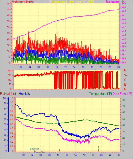 Maximum gust speed = 26.5 mph from 00°( N ) on day 02 at time 10:22