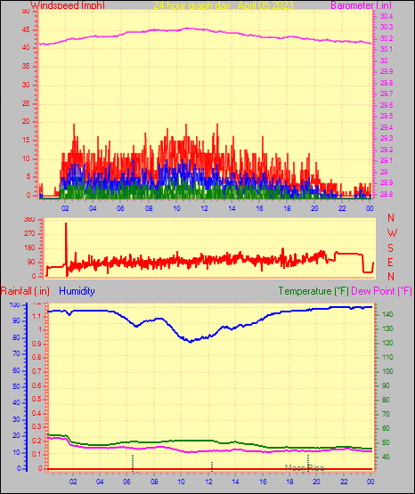 Maximum rain per minute = 0.02 in. on day 30 at time 16:18