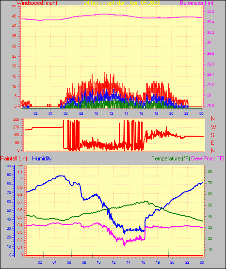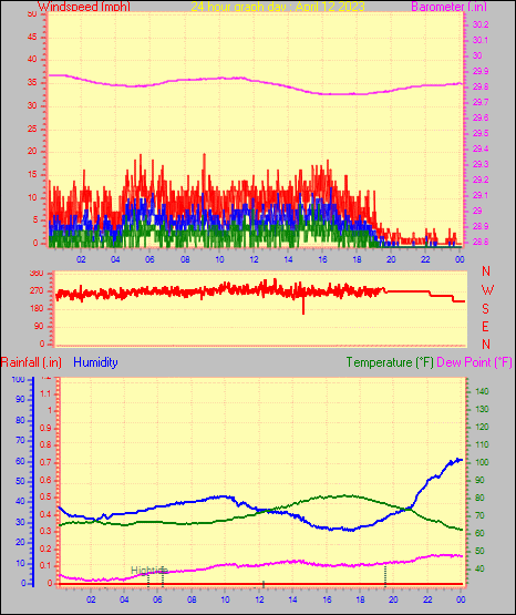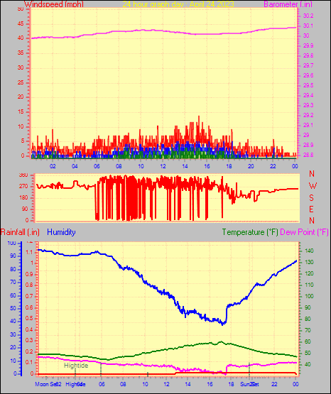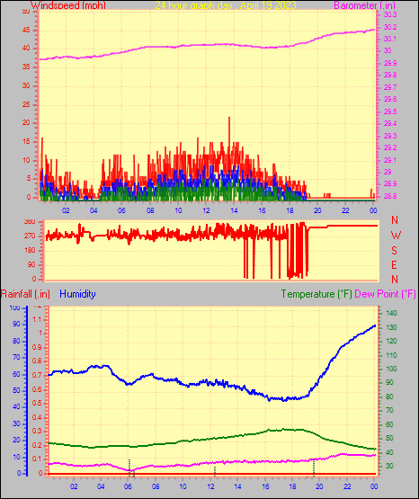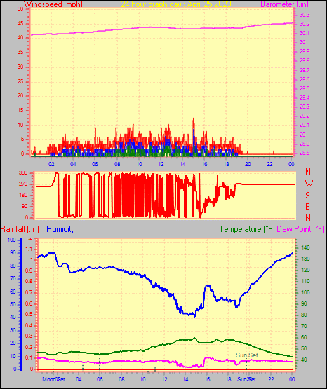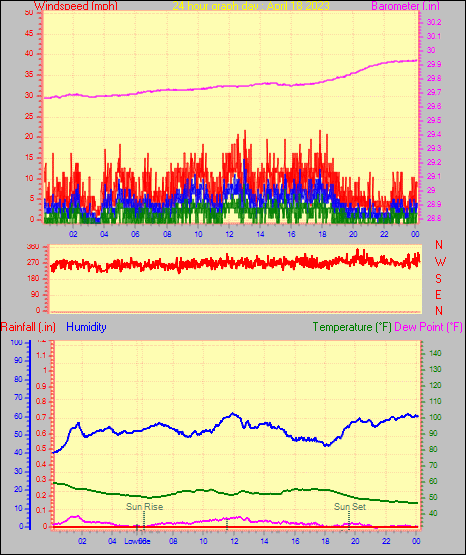 Maximum windspeed = 15.0 mph from 276°( W ) on day 18 at time 13:00