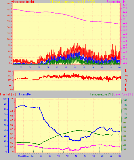 Minimum pressure = 29.05 in. on day 30 at time 23:58