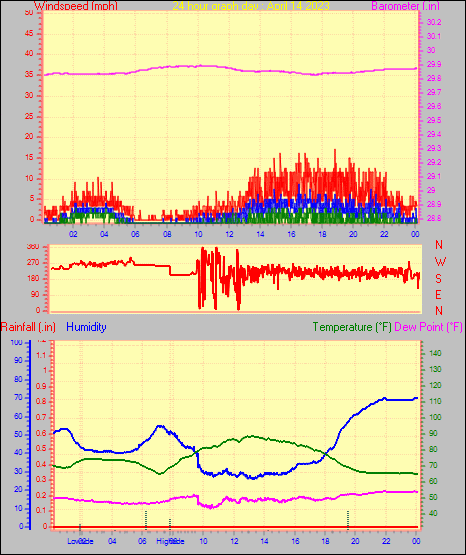 Minimum temperature = 48.0°F on day 29 at time 00:41