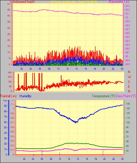 Minimum dewpoint = 44.3°F on day 28 at time 0:05