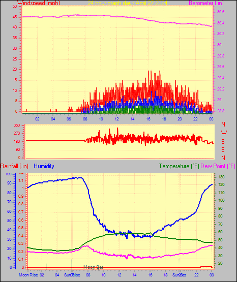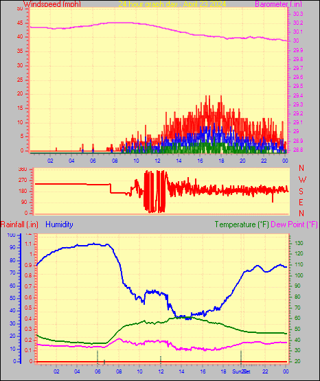 Maximum windspeed = 19.6 mph from 178°( S ) on day 12 at time 05:54