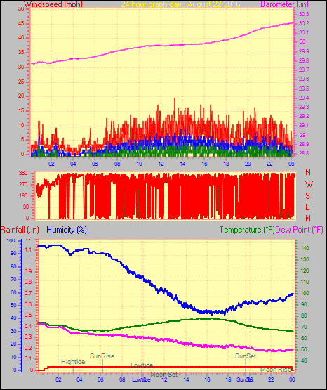 Maximum windspeed = 6.9 mph on day 29 at time 12:33
