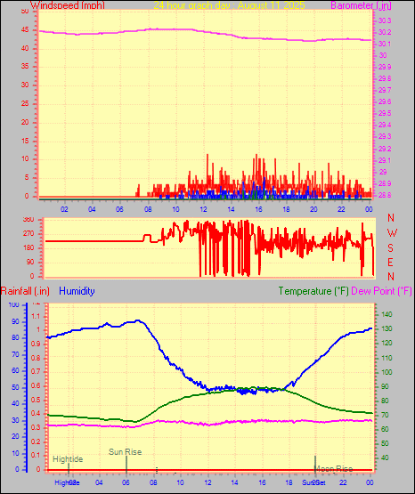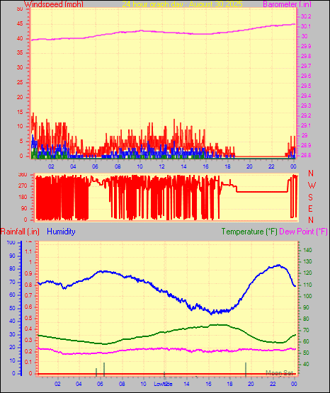 Maximum windspeed = 8.1 mph on day 29 at time 00:15