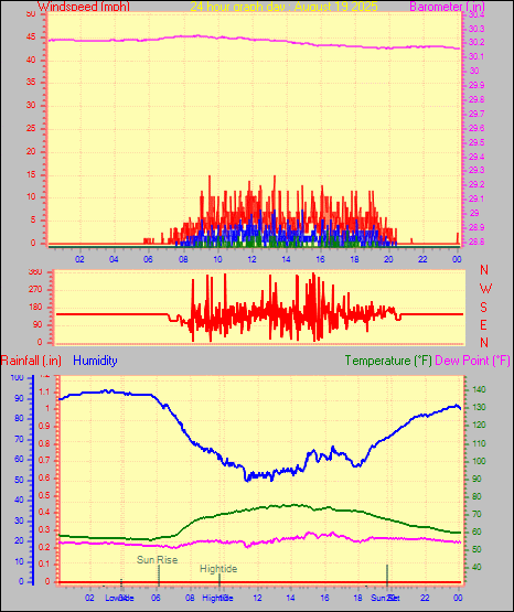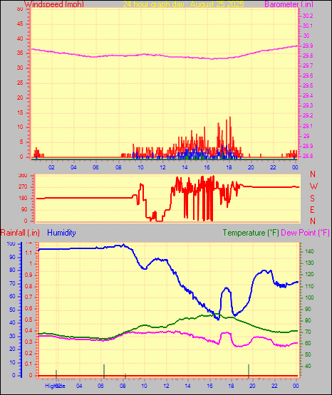 Maximum windspeed = 6.9 mph on day 02 at time 11:08