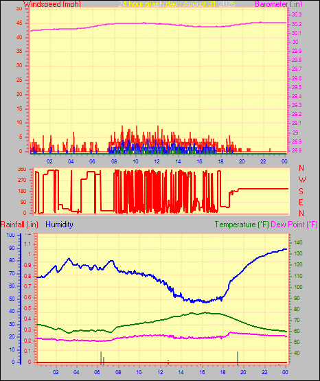 Maximum dewpoint = 56.5°F on day 30 at time 00:05