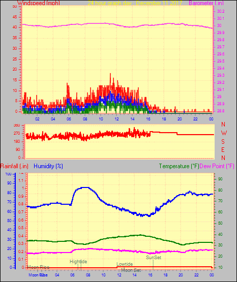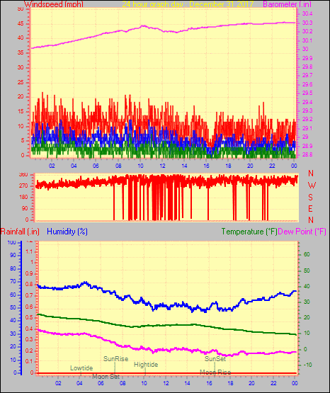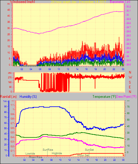 Maximum windspeed = 11.5 mph on day 30 at time 22:04