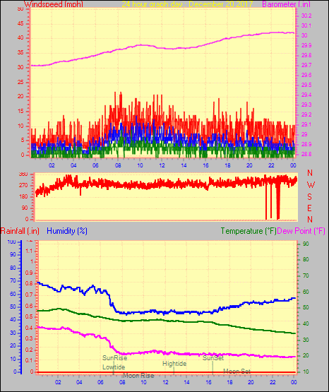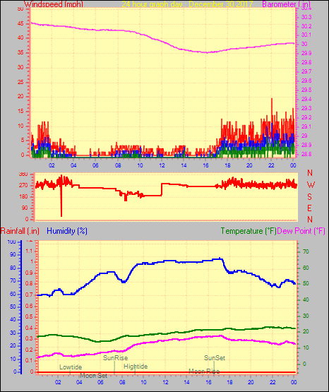 Minimum dewpoint = 0.2°F on day 29 at time 0:22