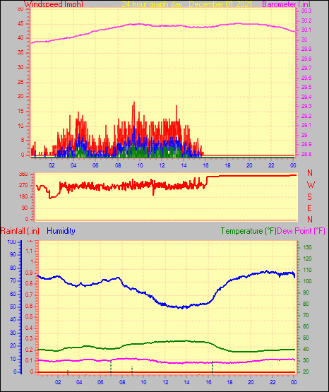 Maximum windspeed = 18.4 mph from 282°(WNW) on day 12 at time 01:38