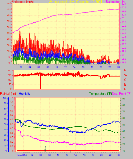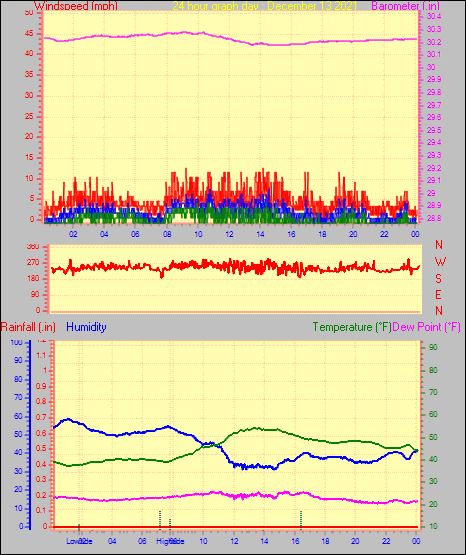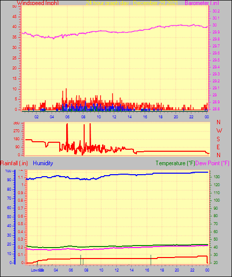 Minimum temperature = 40.0°F on day 29 at time 04:25