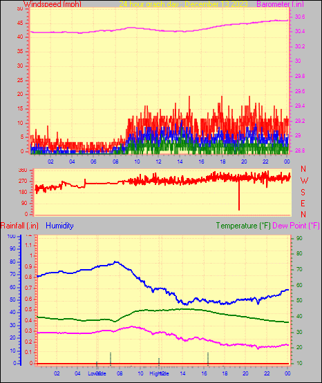 Maximum dewpoint = 43.5°F on day 30 at time 00:06