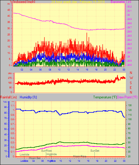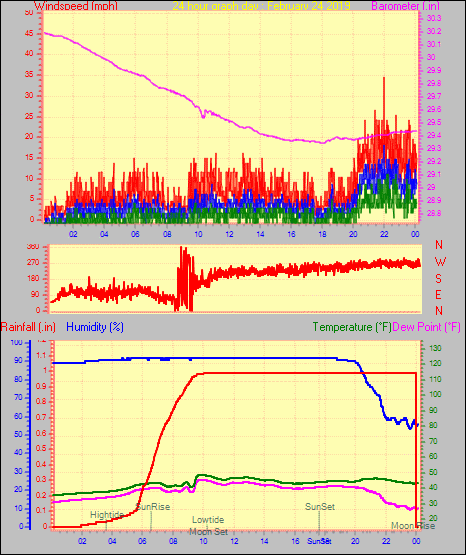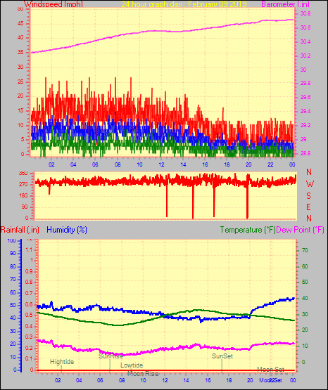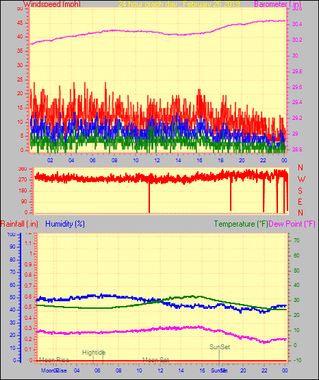 Maximum windspeed = 20.7 mph from 269°( W ) on day 25 at time 00:49