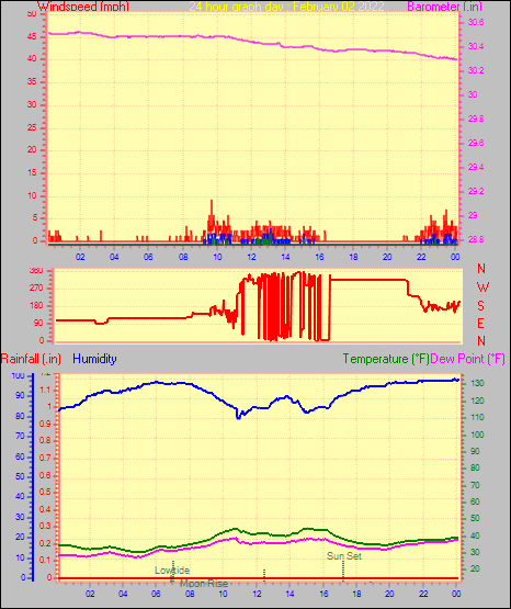 Maximum dewpoint = 30.2°F on day 01 at time 23:58