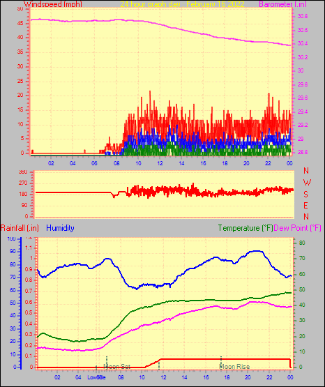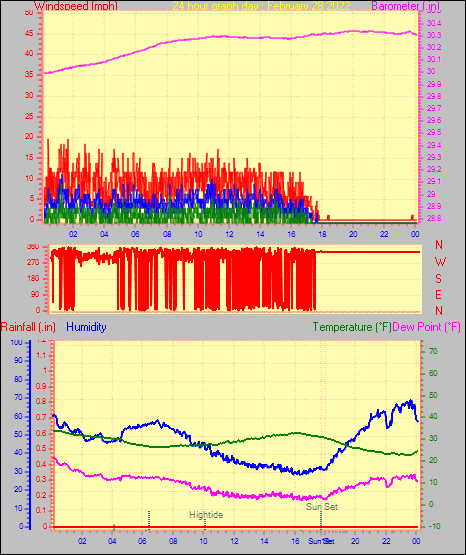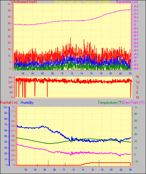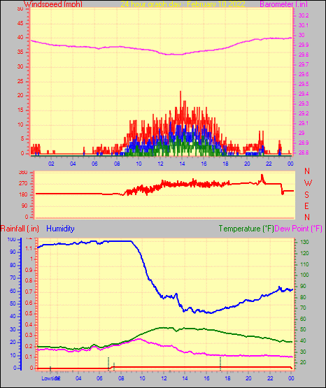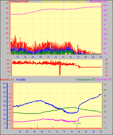 Maximum windspeed = 18.4 mph from 234°( SW) on day 22 at time 19:04