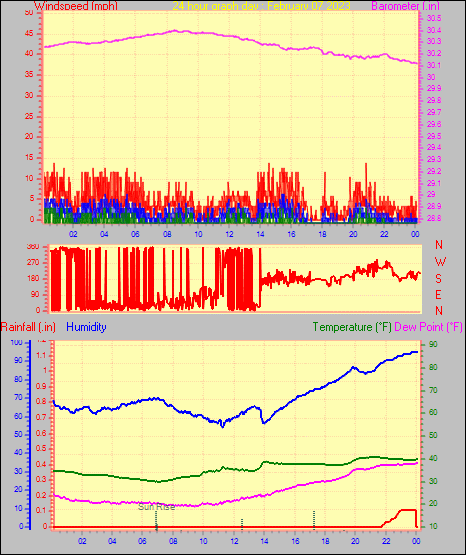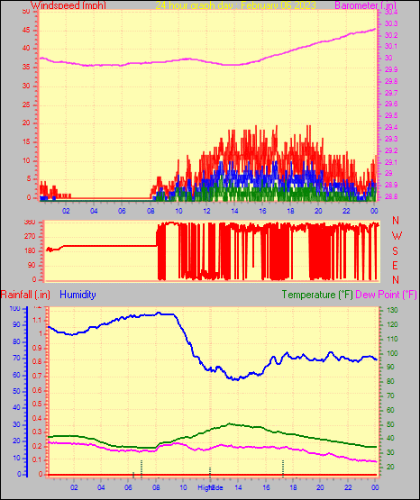 Maximum windspeed = 11.5 mph on day 28 at time 04:21