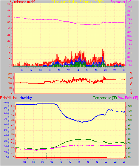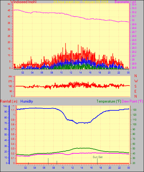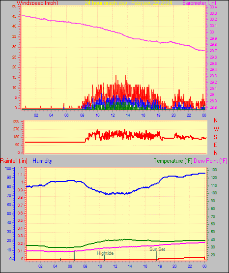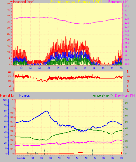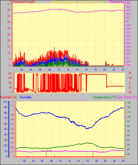 Maximum windspeed = 15.0 mph on day 29 at time 09:23