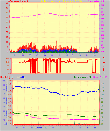 Maximum windspeed = 17.3 mph from 277°( W ) on day 16 at time 07:35