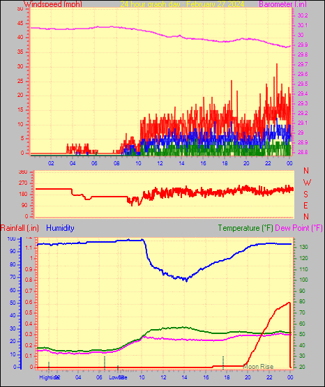 Maximum rain per minute = 0.00 in. on day 29 at time 23:57