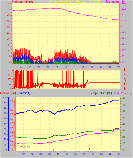 Maximum pressure = 30.630 in. on day 02 at time 08:40