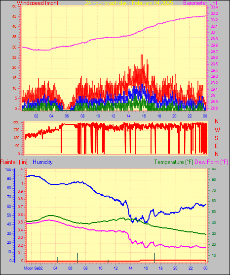 Maximum gust speed = 26.5 mph from 343 °(NNW) on day 01 at time 09:19