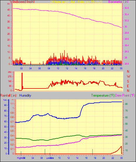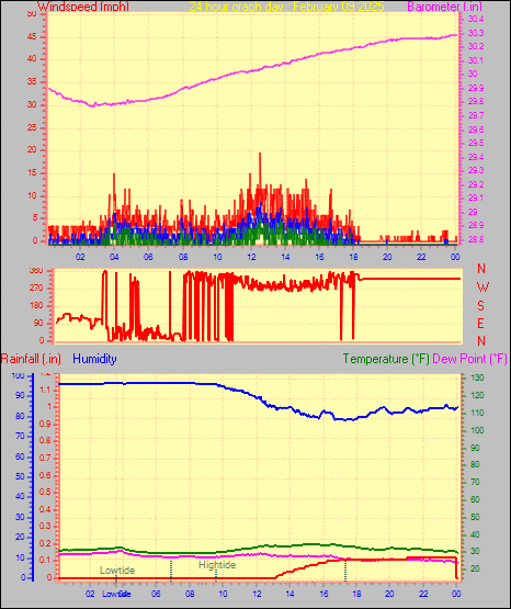 Minimum pressure = 28.99 in. on day 16 at time 18:17