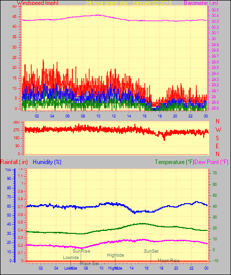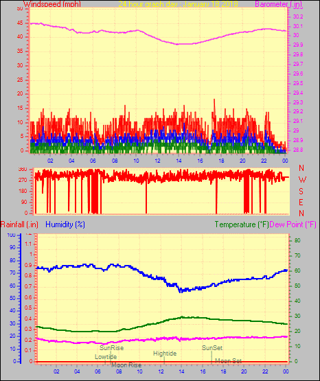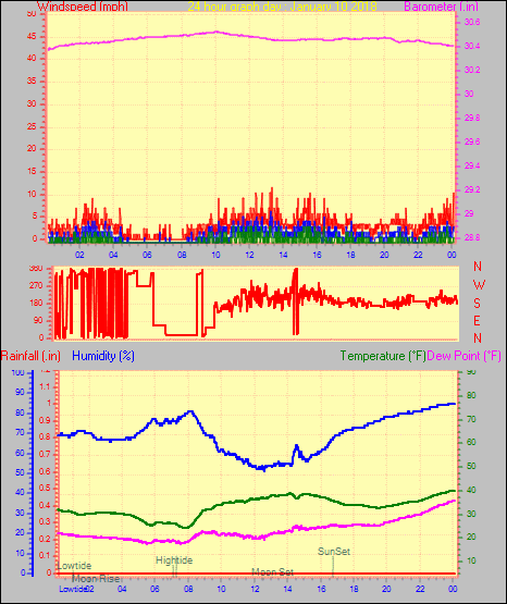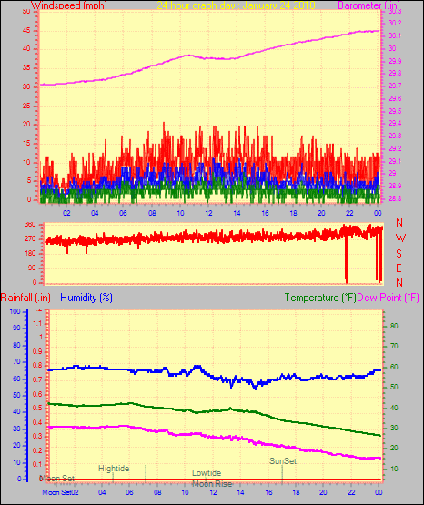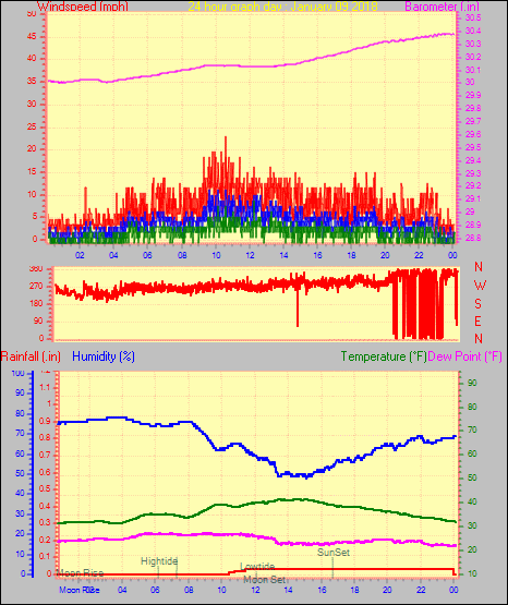 Maximum windspeed = 12.7 mph on day 30 at time 22:58