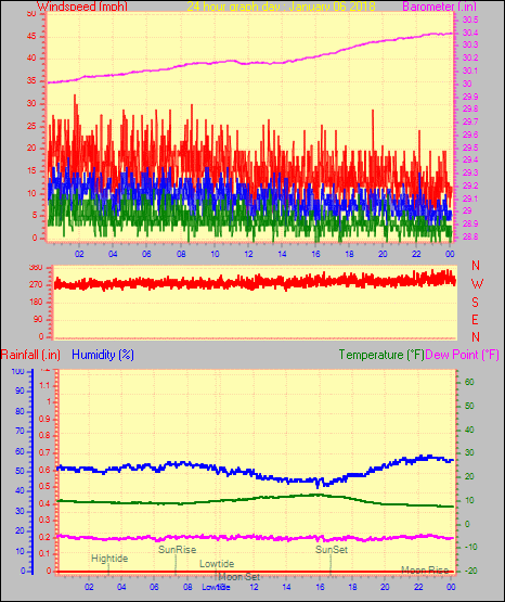 Maximum gust speed = 27.6 mph from 298 °(WNW) on day 30 at time 22:33