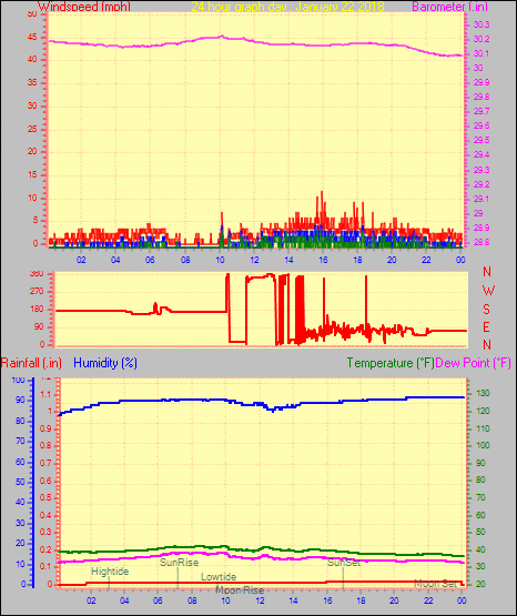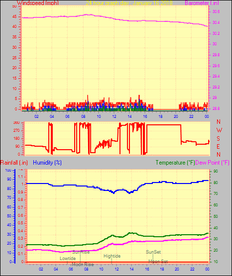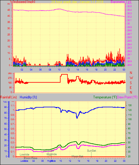 Minimum pressure = 29.905 in. on day 30 at time 14:40