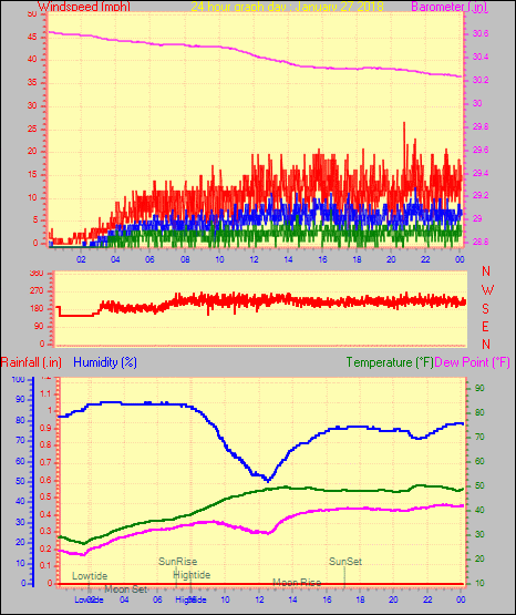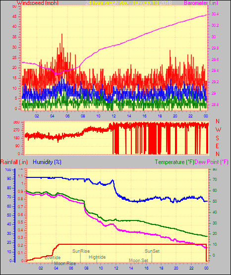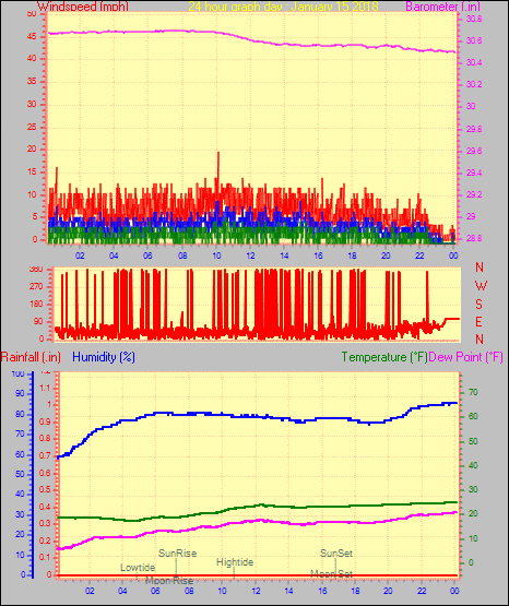 Maximum windspeed = 10.4 mph on day 29 at time 23:49