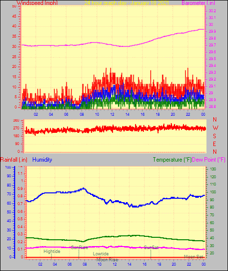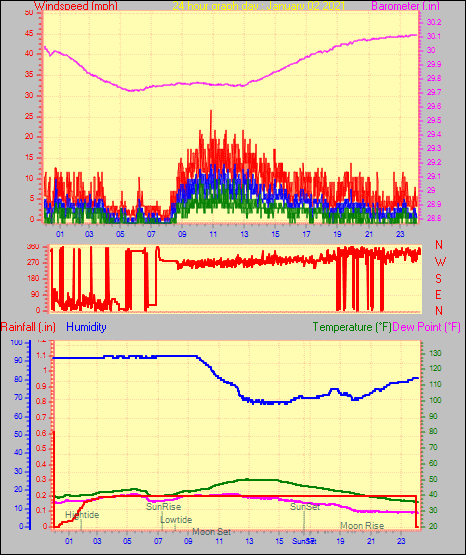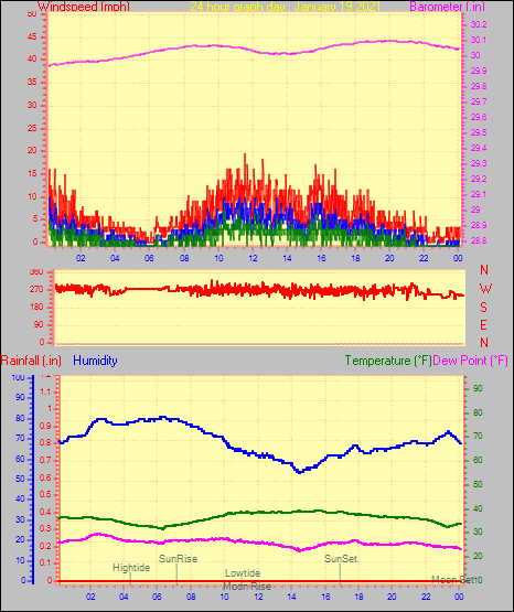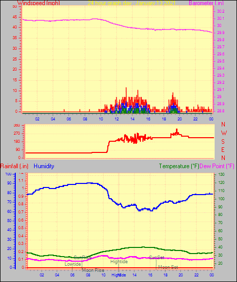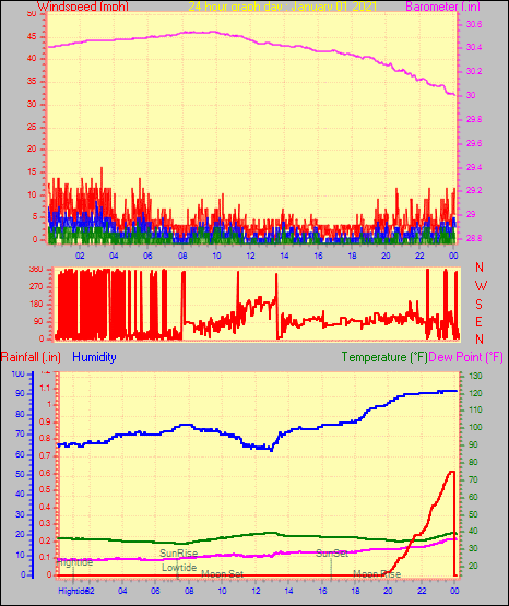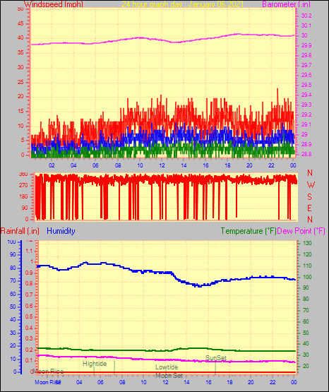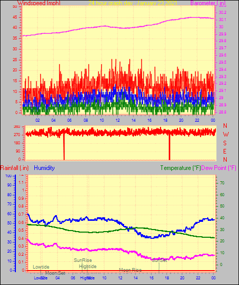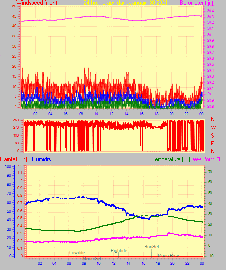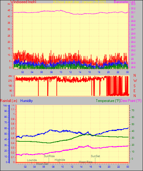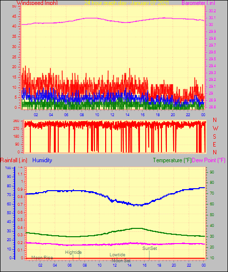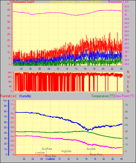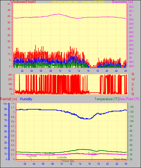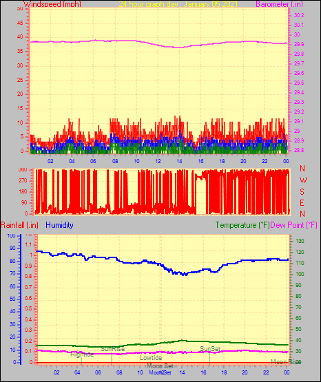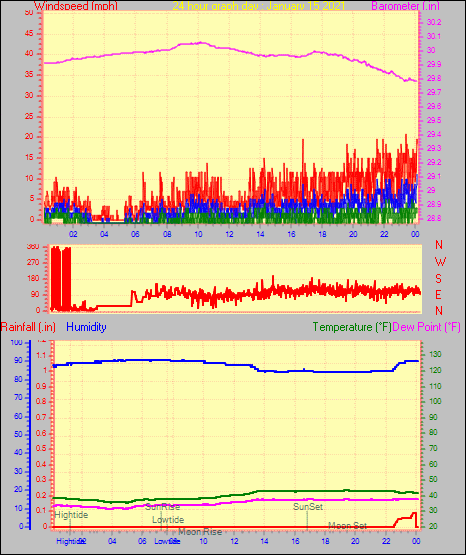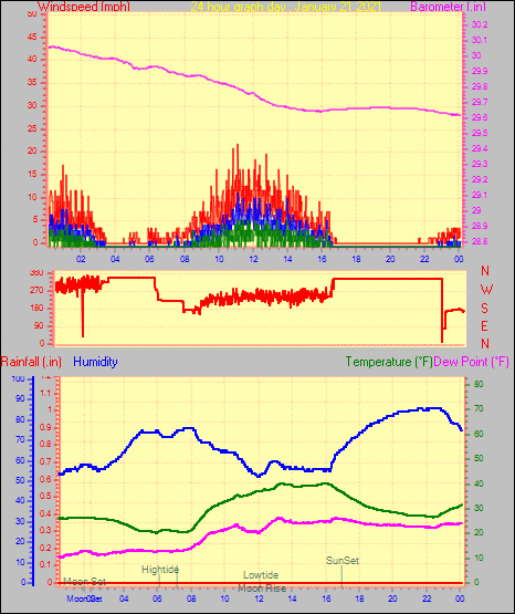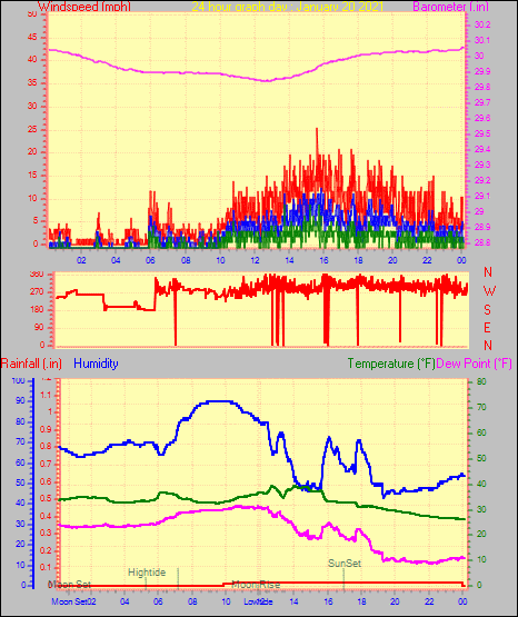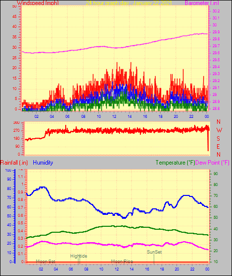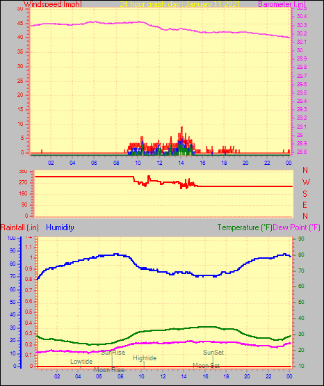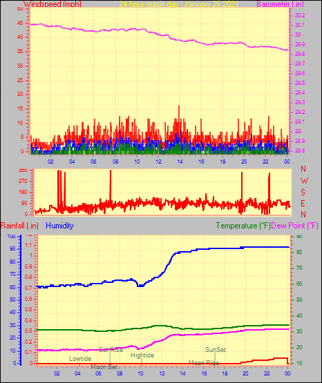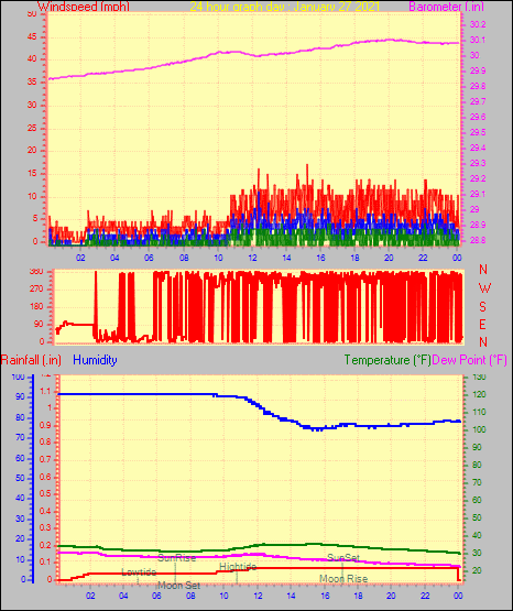 Maximum windspeed = 16.1 mph from 302°(WNW) on day 29 at time 04:46