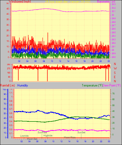 Minimum dewpoint = -0.3°F on day 29 at time 7:45