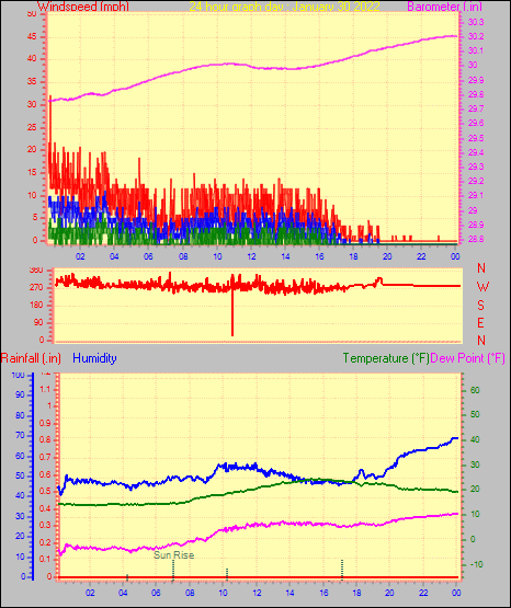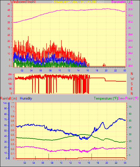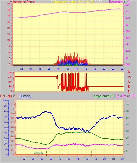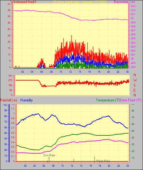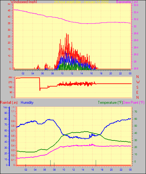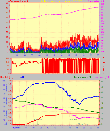 Maximum windspeed = 18.4 mph from 333°(NNW) on day 29 at time 09:50