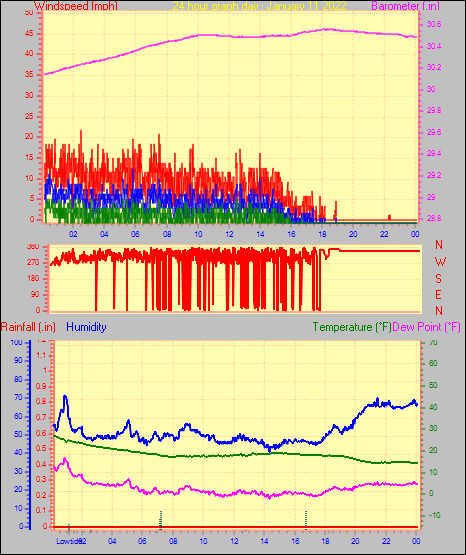 Maximum windspeed = 11.5 mph on day 30 at time 03:27