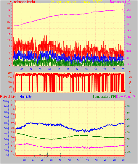 Minimum temperature = 13.8°F on day 30 at time 02:25
