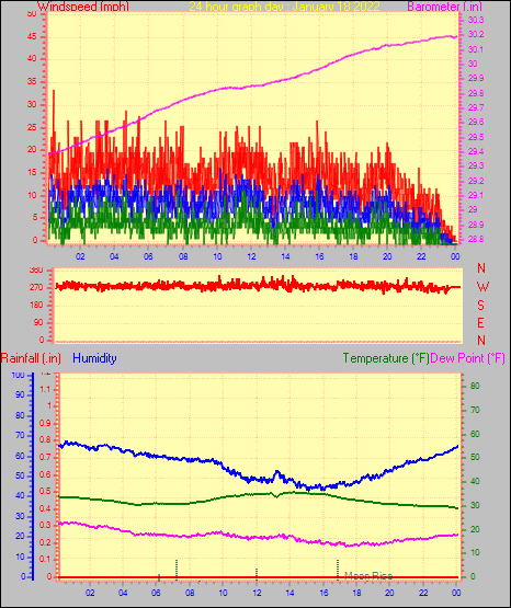 Maximum gust speed = 32.2 mph from 281 °( W ) on day 30 at time 00:15