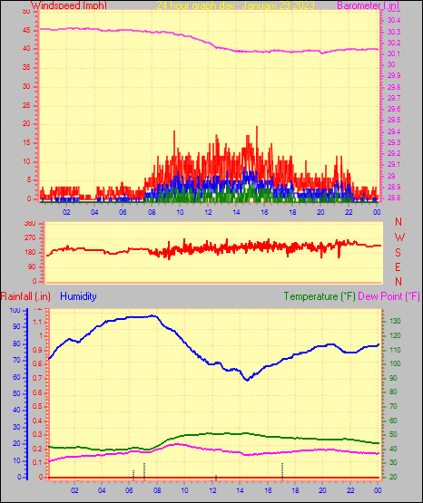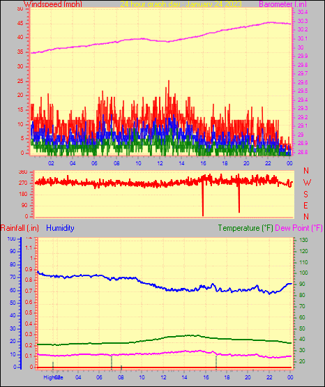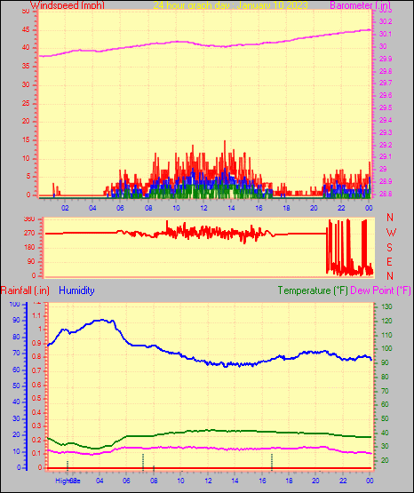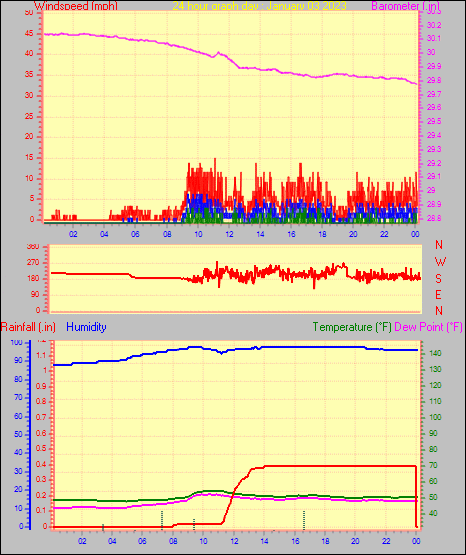 Maximum gust speed = 15.0 mph from 194 °(SSW) on day 03 at time 11:07