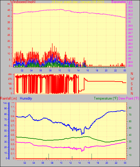 Maximum windspeed = 17.3 mph from 240°(WSW) on day 26 at time 10:32