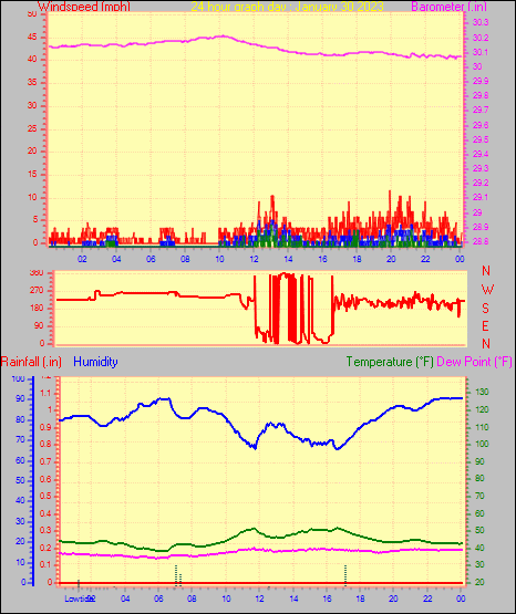 Maximum dewpoint = 41.6°F on day 30 at time 11:42