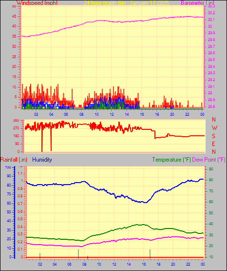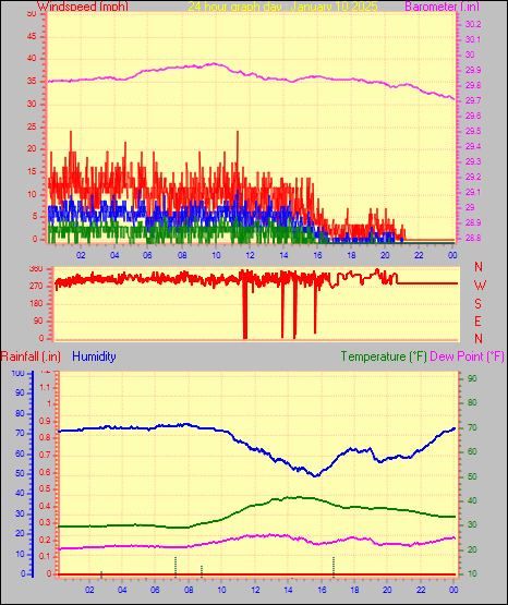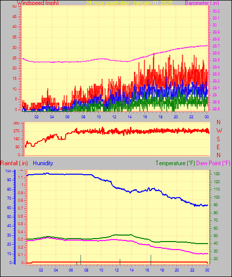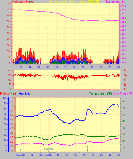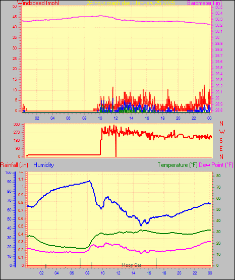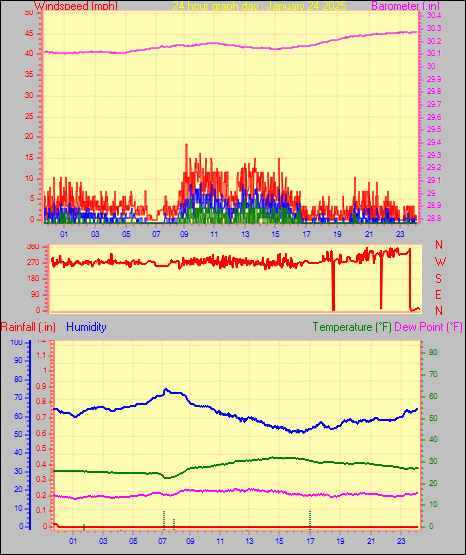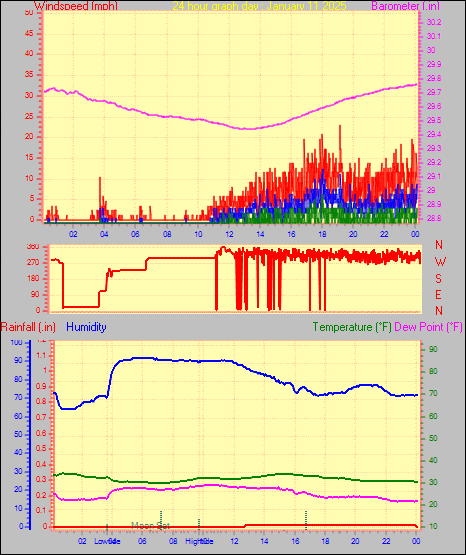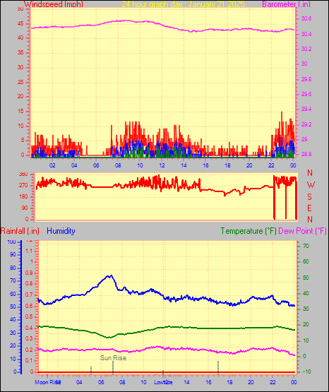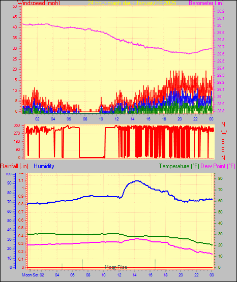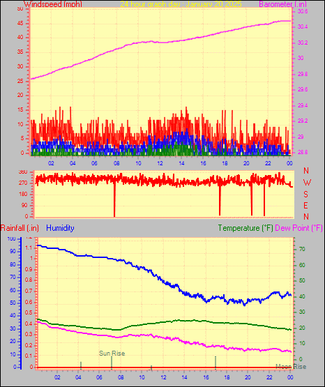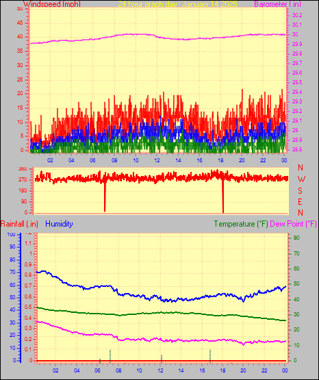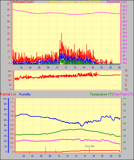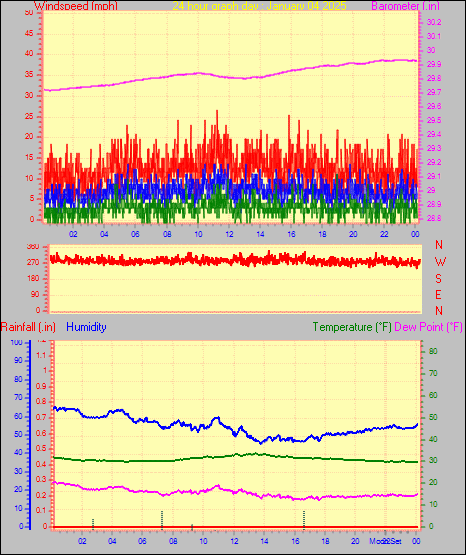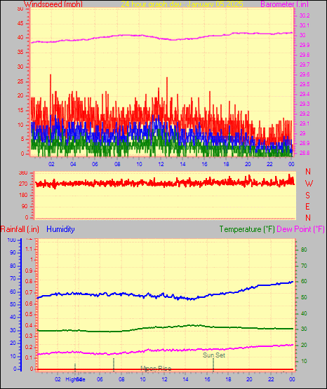 Maximum windspeed = 16.1 mph from 279°( W ) on day 30 at time 02:21