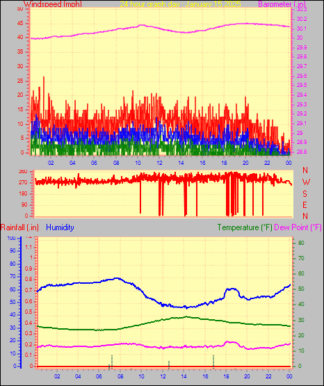 Minimum dewpoint = 13.3°F on day 28 at time 019:02
